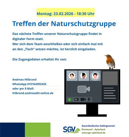 Hinzu kommt ein Großprojekt mit dem Namen „BLATT FÜR BLATT - FÜR EINE NACHHALTIGE ZUKUNFT“, welches die Naturschutzgruppe über viele Monate beschäftigen und fordern wird. Dieses Projekt, bei dem es unter anderem darum geht, die Verbindung zwischen Menschen, Natur und Umwelt zu stärken, wird vom LWL-Naturfonds gefördert und von unserem SGV-Gesamtverein professionell unterstützt.