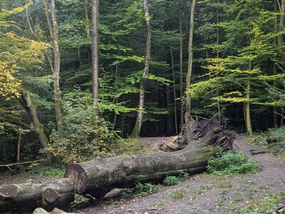 Wir starten in Husen mit dem Naturschutzgebiet (NSG) Kurler Busch, sehr schöne alte Buchenwälder, queren kurz eine Straße und wandern dann durch das NSG Alte Körne. Die Trampelwege in beiden NSG sind aufgrund der Regenfälle der letzten Tage etwas matschig. Wir sind gemütlich und vorsichtig unterwegs und genießen die frische Waldluft.
